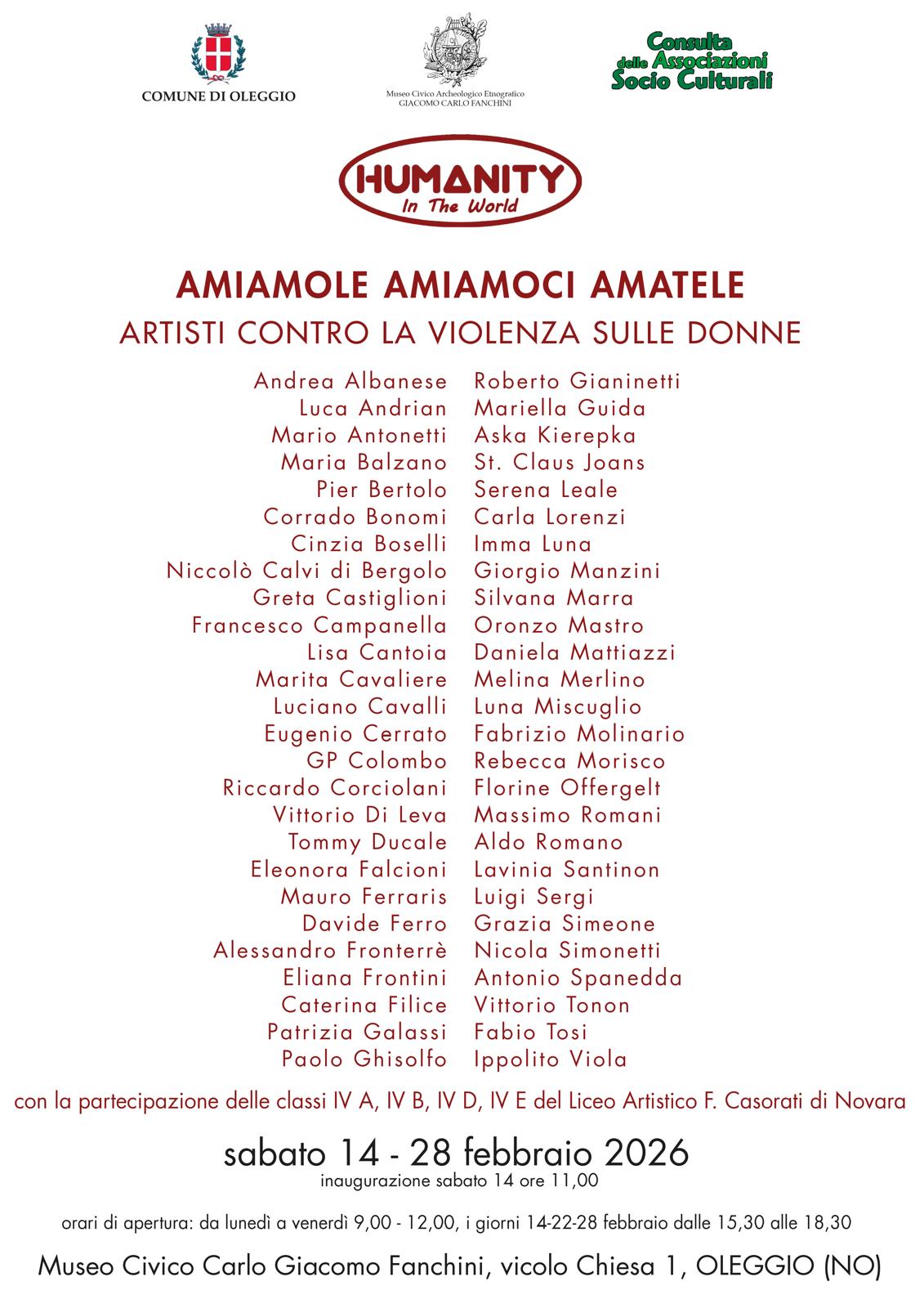 002 • Oleggio (NO), dal 14 al 28 febbraio, Amiamole Amiamoci Amatele, Museo Civico Carlo Giacomo Fanchini